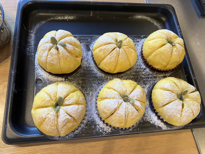 中にもたっぷりとかぼちゃ餡を詰めた秋らしいパン。