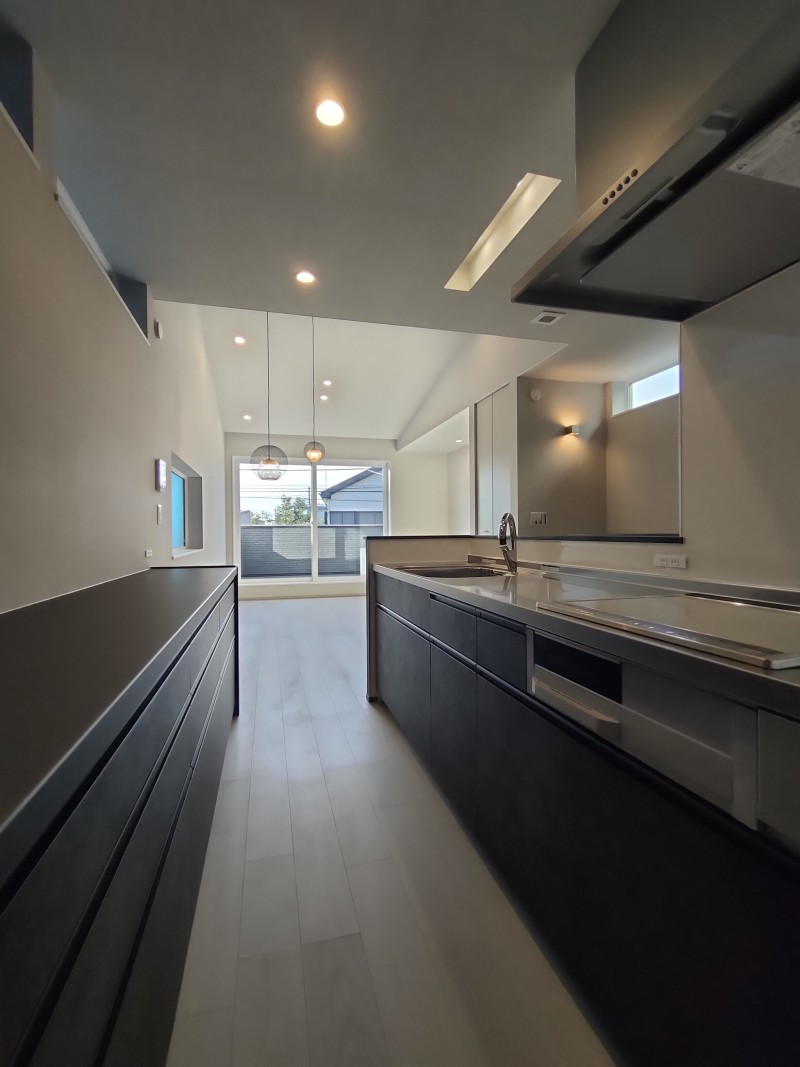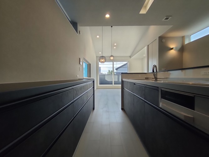 中心となるキッチンに「ブラック系のアクセント」