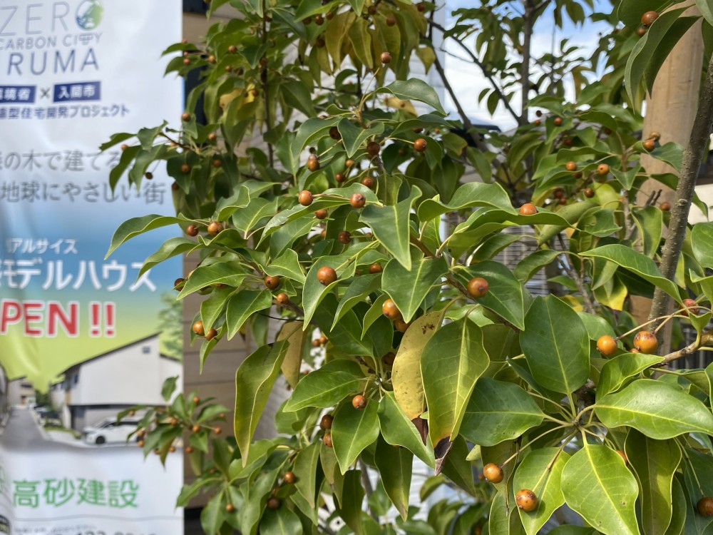ゼロカーボンシティ入間のモデル棟では、玄関アプローチのソヨゴが黄色い実をつけていて「すっかり秋ですね」と言いたくなる光景です。