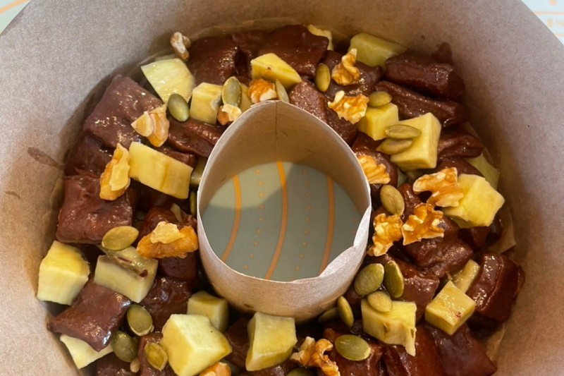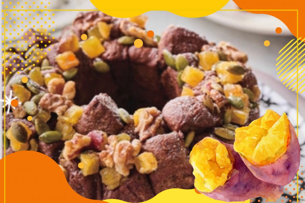 ふんわりココア生地に、甘くほっくりとしたさつまいもをふんだんに載せた、