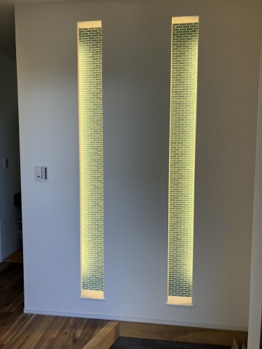 玄関ドアを開けると、まず目に入るのは「玄関は家の顔だから」と選ばれた モザイクタイルのニッチ。