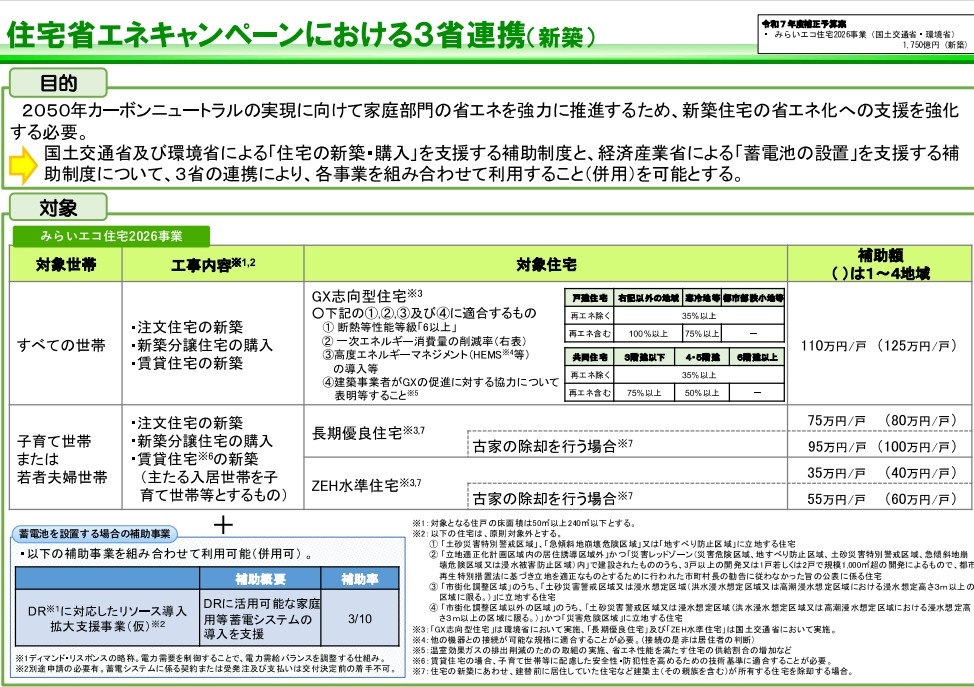 住宅の省エネ化への支援強化策(令和7年度補正予算案の閣議決定