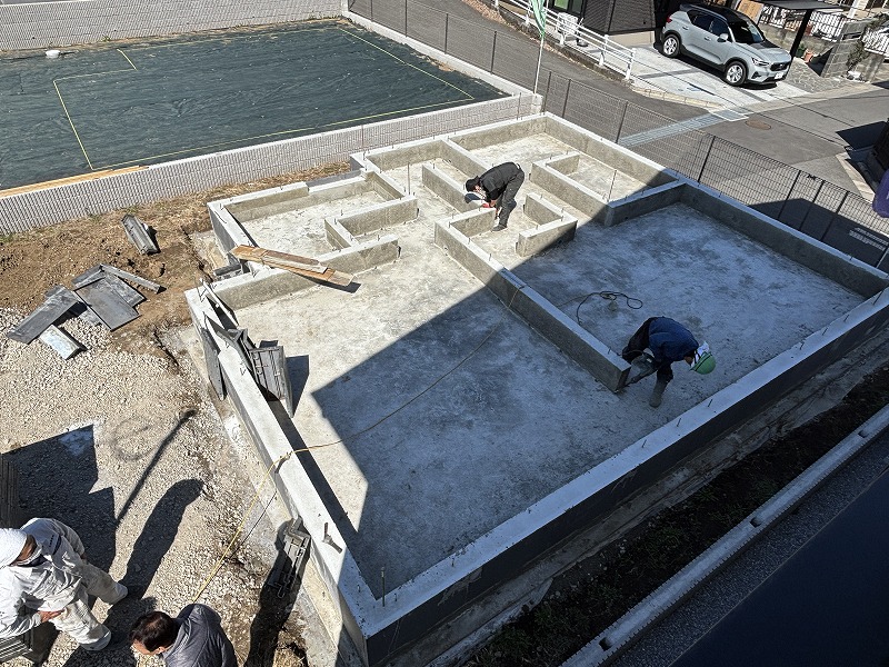 現在は構造工事中(1棟)・基礎工事中(3棟)と各区画で家づくりが進んでいます。