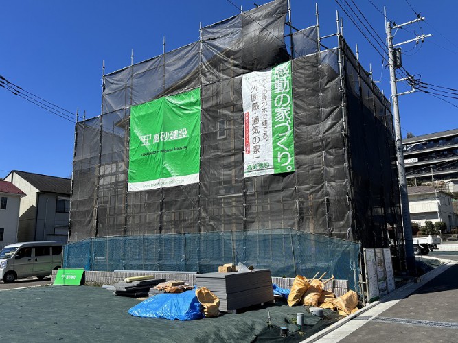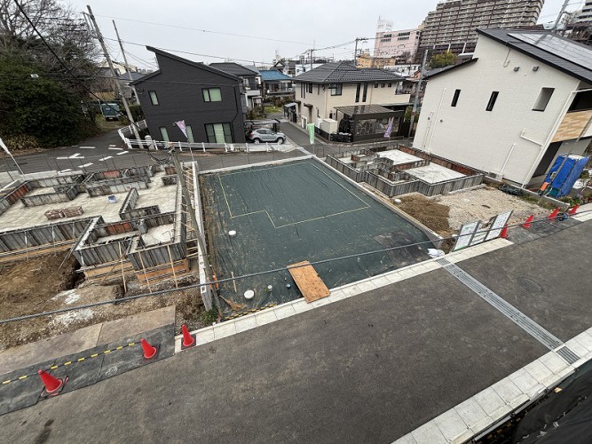 高砂建設の建築条件付き分譲地「ゼロカーボンシティ入間」では、各区画で工事が始まって街が少しずつ形になってきました。