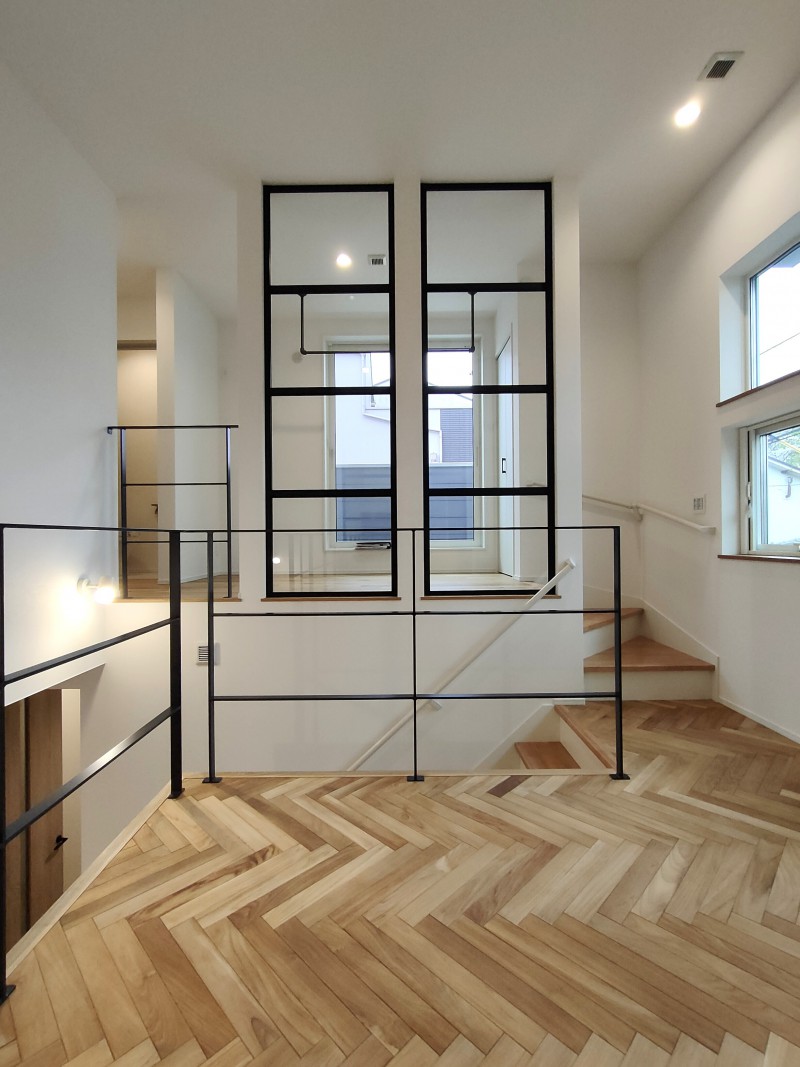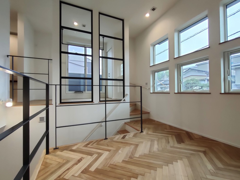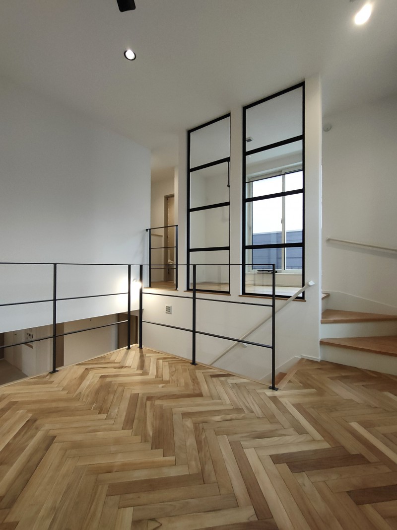 そこにアクセントとして取り入れた「ヘリンボーンの無垢床」が加わり、