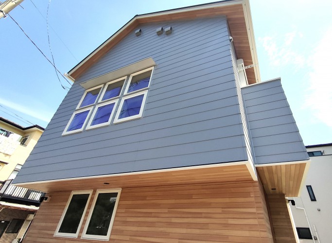 今回のようにグレー系のガルバと木目を組み合わせることで、