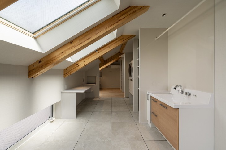 大きなカウンターを設けた使い勝手のいいランドリースペース。