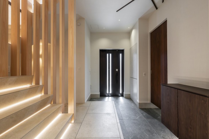 階段は、現場監督が一段一段間接照明を仕込んで高級感を演出しています。