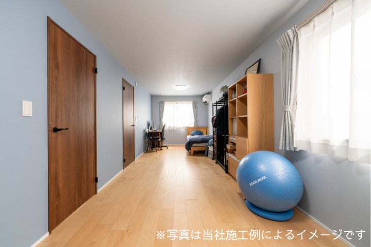 将来、間仕切りを設けて2部屋にできる約9帖の子ども部屋。