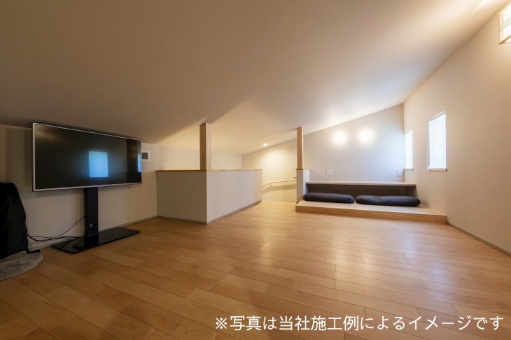 (延床面積 約33坪 /将来間仕切りの子供部屋を有する、2LDKの吹き抜けリビングの住まい+WIC+小屋裏)