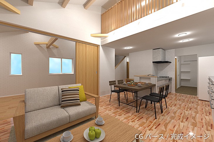 勾配天井が生む、開放的な2階LDK