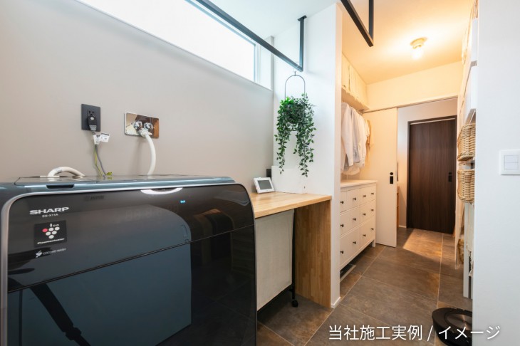 洗濯から物干し、収納までがスムーズ。共働き・子育て世帯にうれしい間取りです。