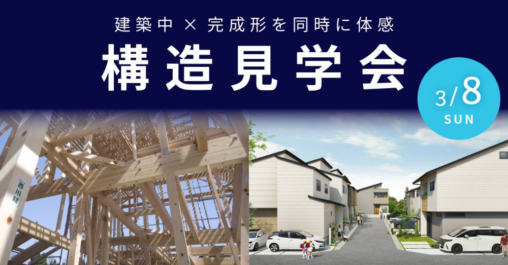 完成してしまうと見えなくなる柱・梁・金物・断熱材・施工精度を、実際の現場で確認いただけます。