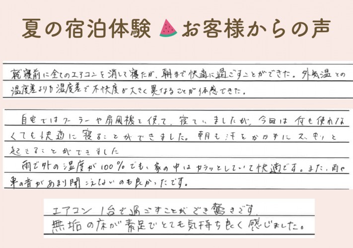 ご家族だけで実際に1泊して、住み心地を体感していただきます。
