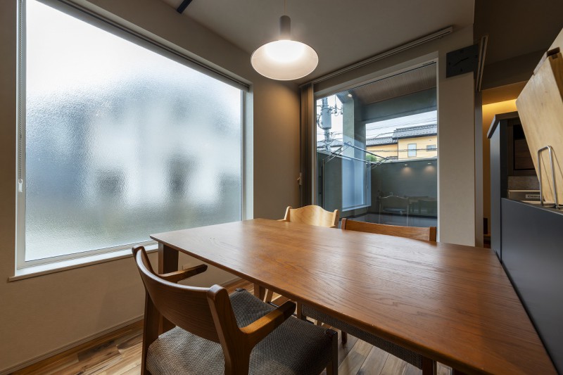 LDKには大きな窓を設け、たっぷりの光を取り入れつつ、型板ガラス(模様入りガラス)を採用しました。