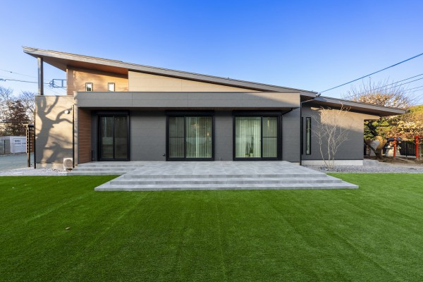 デザイン性と室内環境の快適さを両立した、暮らしやすい平屋の外観に仕上がりました。