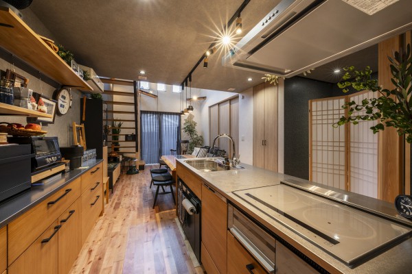 キッチンは、最初はアイランドを考えていましたが、最終的にペニンシュラに変更しました。 ゆるやかに空間を仕切ることができ、水回りをさりげなく隠せる点や、ニッチをまとめられた点も気に入っています。