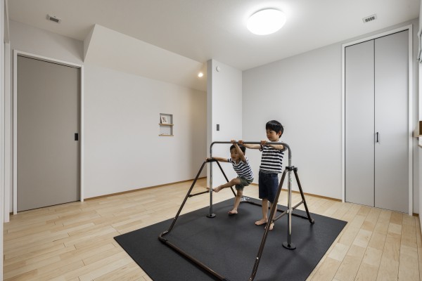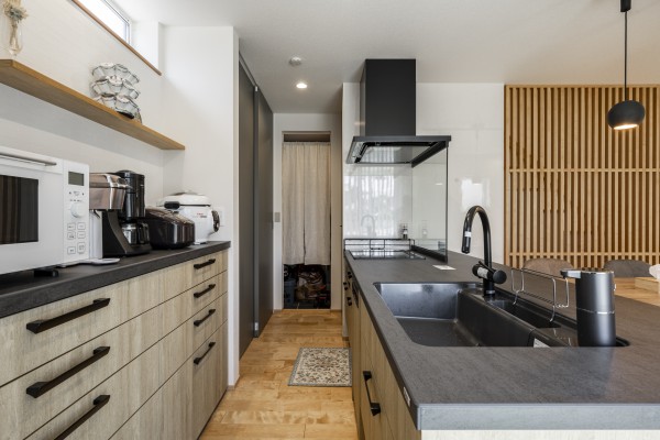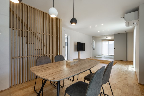 ご家族の明るいお人柄と、一人ひとりの顔が見渡せる大空間のLDKも相まって、