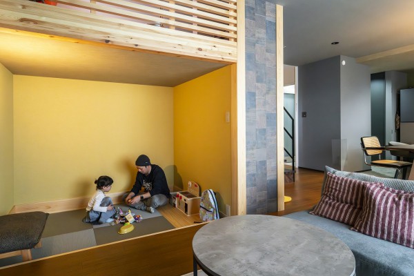 S様邸のダウンフロアの畳コーナーは、お子様の遊び場や大人がくつろぐスペースとして最適。