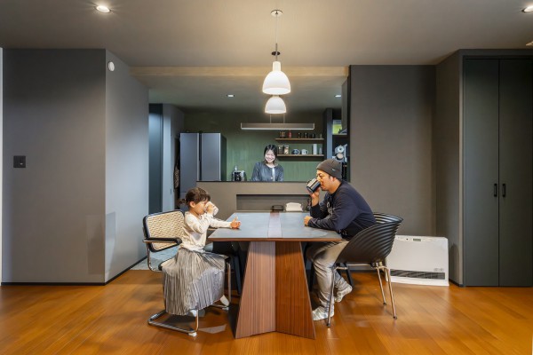 「リビング側の柱との取り合いも美しく仕上げるため、コーナーの柱に三角の見切り材を造ってもらいました。最終的な仕上がりがどうなるかドキドキしましたが、綺麗に収まって大満足です。営業やインテリアコーディネーターだけでなく、現場監督にも気軽に相談できる環境は有難かったですね」と旦那様もコメント。
