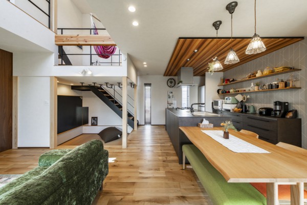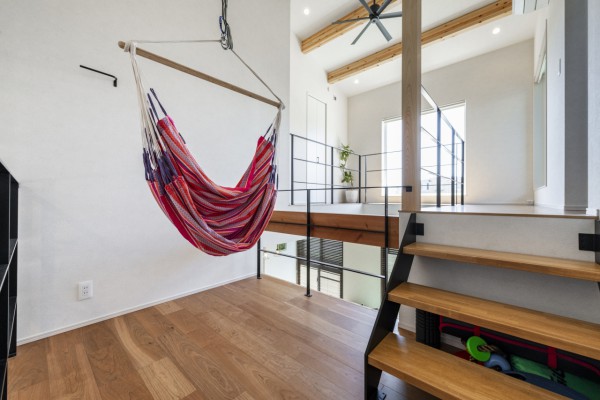趣味や遊びを楽しめる「秘密基地」のような設計で、家全体に遊び心を取り入れています。