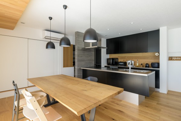 高砂建設と相談しながら、全体はモダンにまとめつつ、ダイニング&キッチンは木を使ったカフェ風にするなど、ちょうどいいバランスを実現しました。