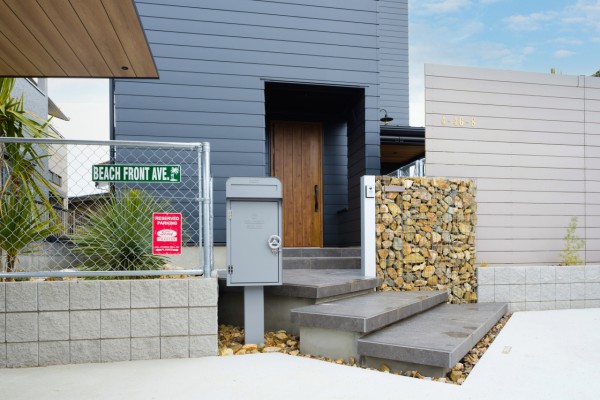 片流れ屋根のシャープなフォルムが目を引くS様邸。カリフォルニアスタイルにこだわった外観や、玄関アプローチの真鍮レターなどの細部まで、お洒落なデザインにこだわりました。空間を無駄なく活かした機能的な間取りからは、共働きで家事・育児を充実させたいというご夫妻の想いが伝わってきます。
