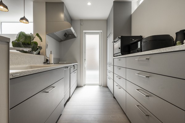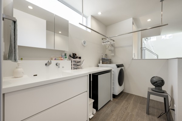 中でも特に大切にされたのは「窓からの景色」。寛ぐときに外界の雑多なものが視界に入らないよう、電柱などが映らない位置やサイズを綿密に検討しました。採光はしっかり確保しながらも、美しい景観だけを切り取る窓。そこには奥様らしい美意識が表れています。