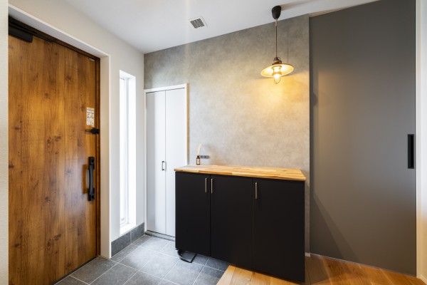 玄関を入ると正面に手洗いがあり、子どもたちが帰宅してすぐに手を洗ったり荷物を片付けたりできます。