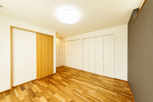 フローリングには西川材のヒノキを使用。木の温もりに包まれた空間に仕上げました。