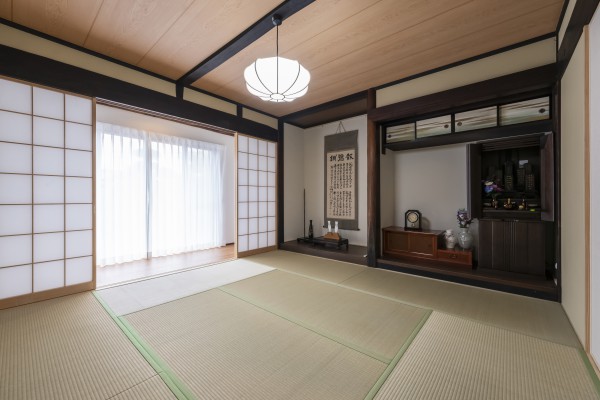 玄関や屋根裏、和室の床の間など旧宅の面影を残しつつ、耐震補強やキッチンの対面化で暮らしやすさも向上。古き良きものを生かし、新たに生まれ変わったT様邸は、ご夫婦がこれからも安心して心地よく暮らせる住まいとなりました。