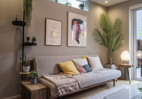 I様ご夫妻は2回目のマイホーム建築。前回の暮らしで気に入ったポイントは残しつつ、不便だった部分はアップデートしました。旦那様は「キッチンやリビングの素材は全部ナチュラルで統一したかったんです。家具や小物もお気に入りばかり」と話します。奥様様も「家にいる時間が増えて、家族みんなが自然にリラックスできる場所になった」と満足そう。家族の声がそのまま反映された、心地よい住まいとなりました。