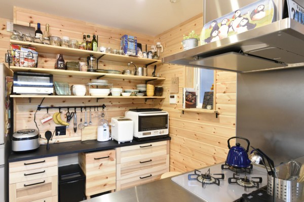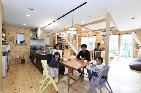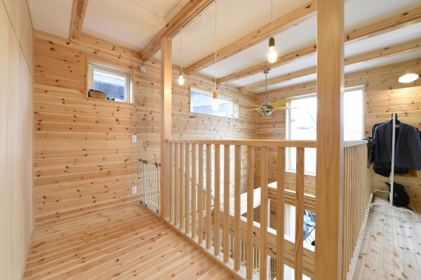 「家を建てたことがきっかけで、DIYに夢中になりました」とご主人。壁や天井のオイル塗装に挑戦したほか、靴箱やコートハンガー、洗面台の棚や扉まで自ら手を加えて仕上げています。「将来は小屋裏に秘密基地のようなシアタールームを作りたい。子供が大きくなったら、梁にブランコを下げるのも面白いですよね」と夢を語ってくださいました。