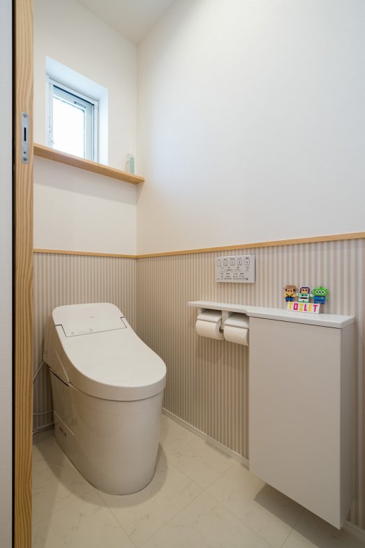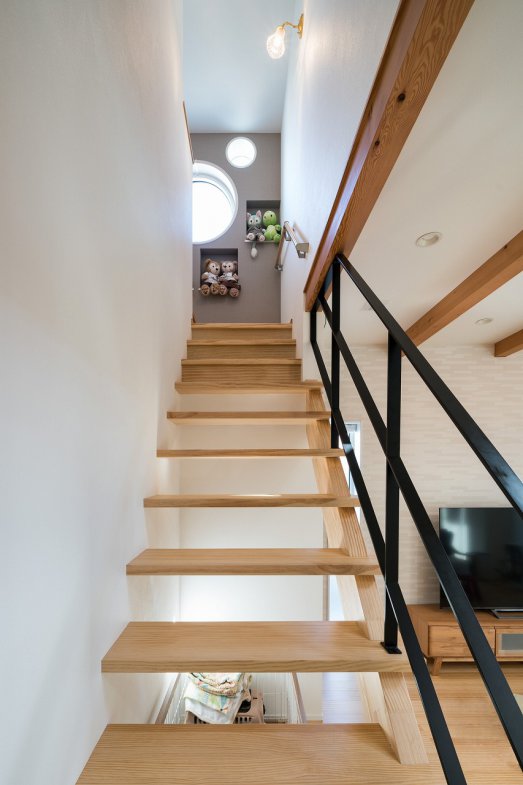 さらに一番のこだわりは、家族で大好きなキャラクターをモチーフにした大きな窓。室内ではテーマパークを思わせる時計の見せ方やニッチを取り入れ、訪れる人の目も楽しませます。「実家の家族が遊びに来た際も、夏でもエアコンをつけなくても空気感が全然違うと驚かれました。日々の身体のラクさを実感できる家です」とI様。
