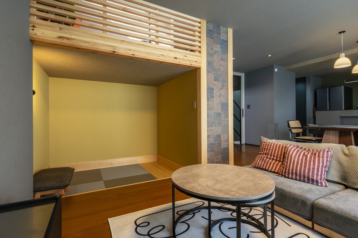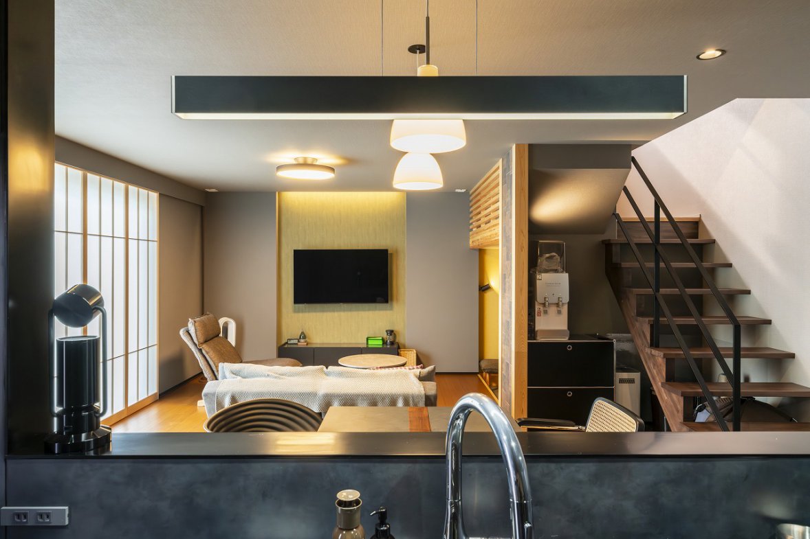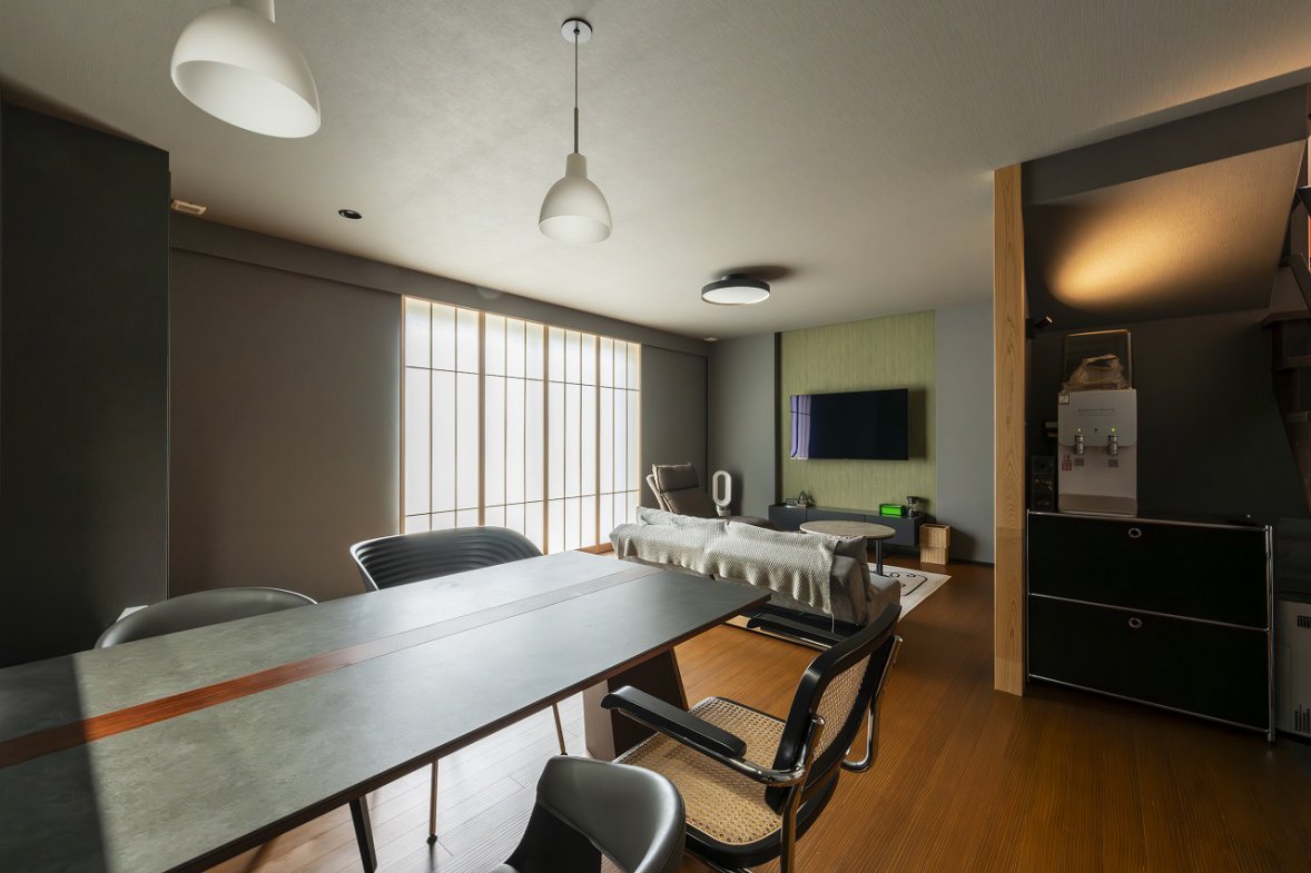 光の陰影が美しい、和×グレイッシュの家