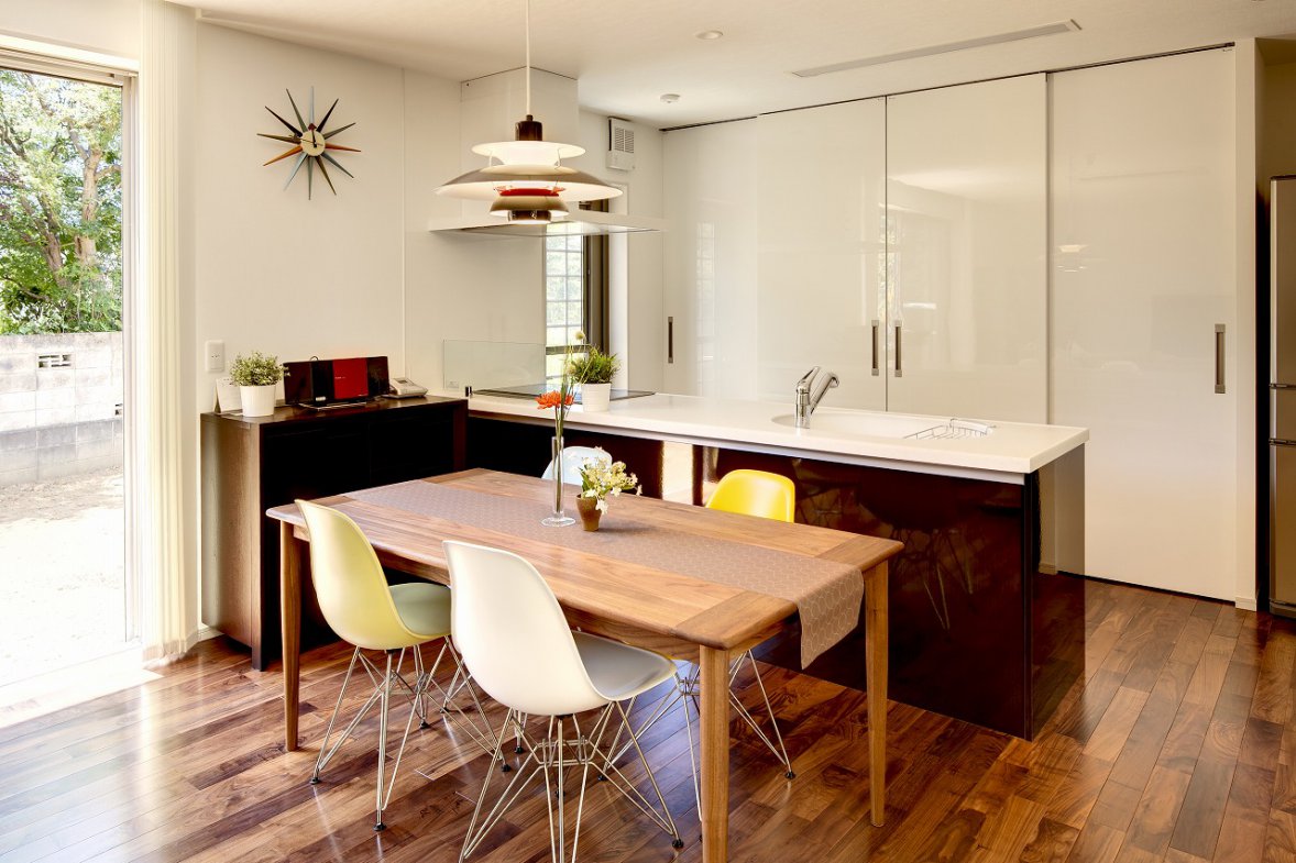 床や柱、カウンターなど随所に無垢材を取り入れ、温もりと居心地を兼ね備えた住まいに仕上がりました。