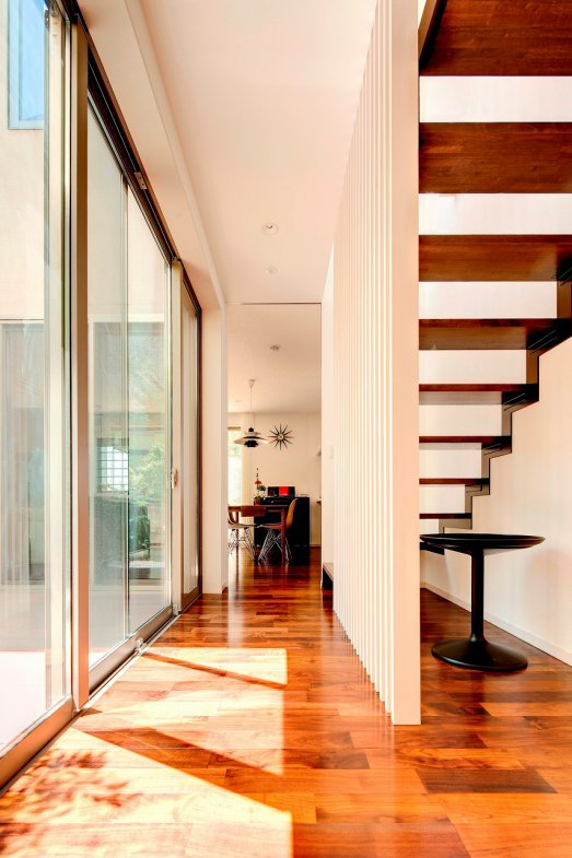 また、木造建築ながら独自のSE金物を活用する「SE構法」を採用。強固な構造体を可能にし、大きな窓や仕切りの少ない開放的な空間を実現しました。さらに、優れた外断熱の効果により「真夏でもクーラー1台で家中が涼しく過ごせました」と嬉しいご感想も。