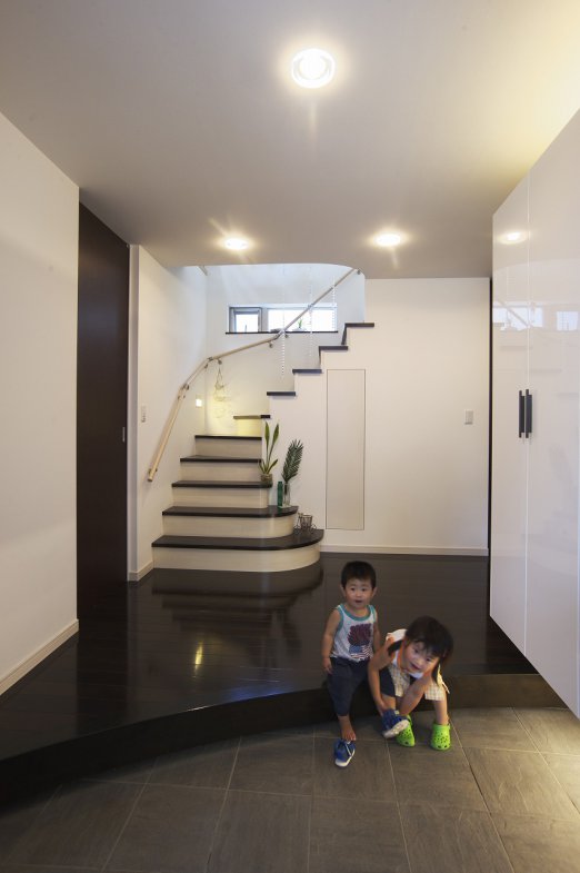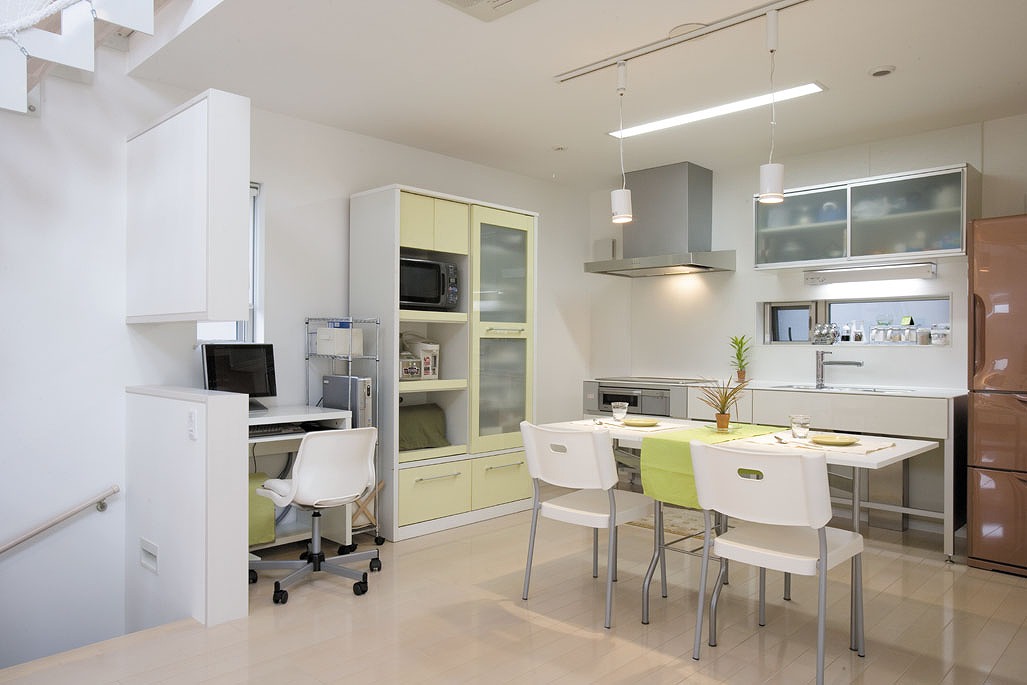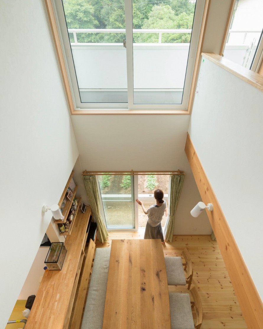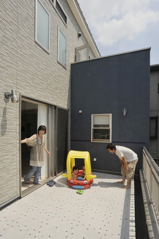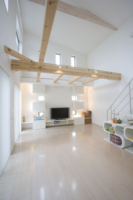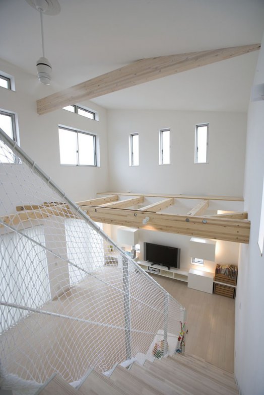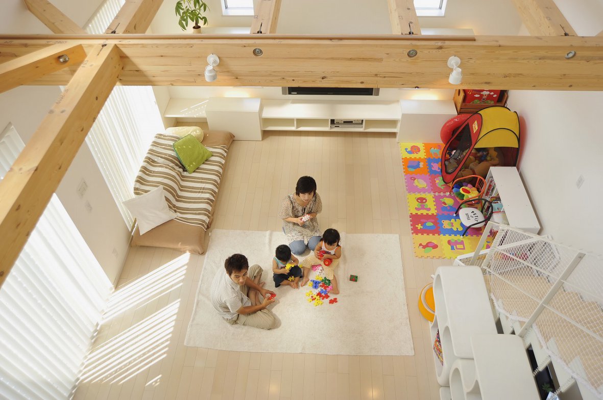 剛木の家で建てた3階建て。その工法の特徴を生かして、リビングの上は2階と3階が縦につながる1つの空間と言えるようなつくり。「窓からたくさんの光が差し込んで家全体が明るくて本当に心地いいですね」と話すKさん。将来、お子さんのために2階にあるリビングの上には床が張れるようになっていて、部屋をつくることができる。もちろん安全性は確保してのこと。白を基調としたリビング、大きなバルコニー、どこもシンプルなつくりだが、家族の大切なモノがいっぱい詰まっているような、暮らしを楽しむ家だ。今後、時間をかけて、お子さんの成長と共にKさんならではの住まいを完成していくのだろう。