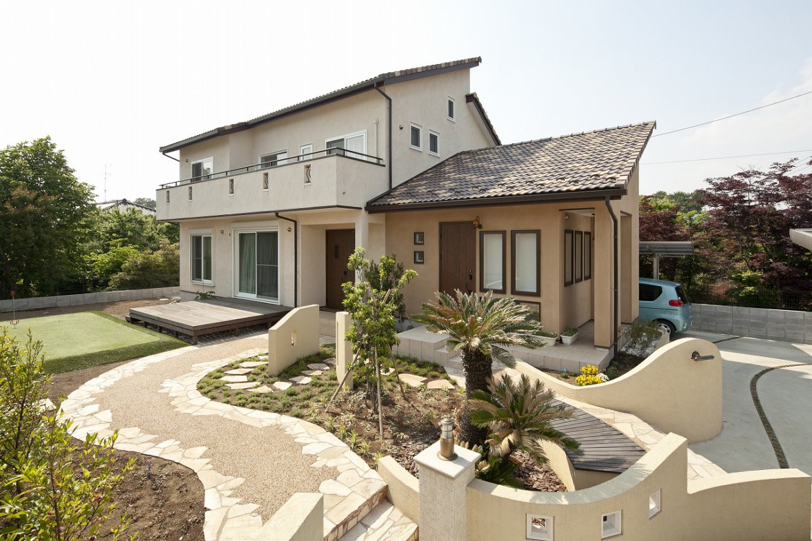 リゾートを意識した外観と、室内の開放感や素材の調和が見どころで、快適さとデザイン性を両立した住まいに仕上がりました。