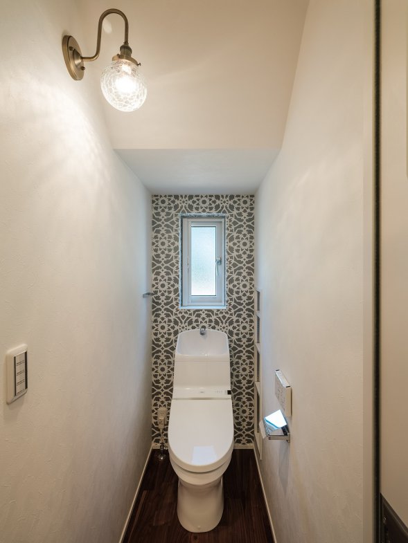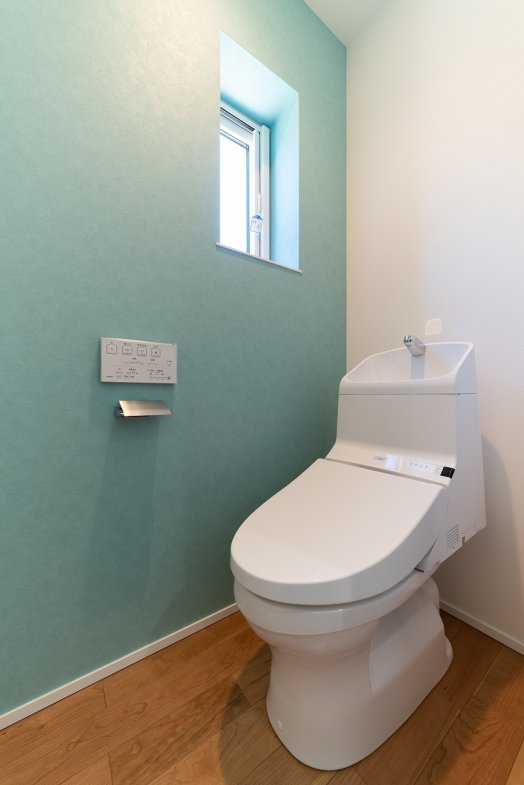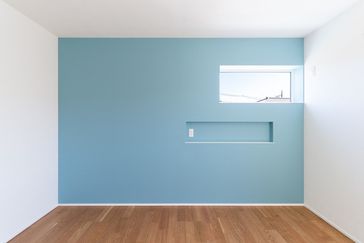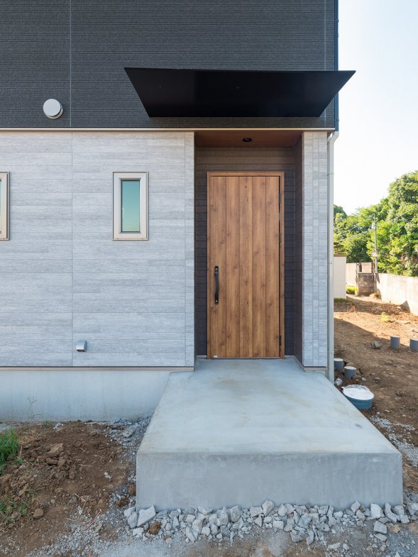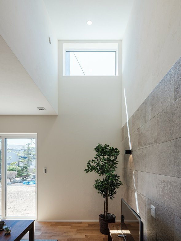 奥様が子どもの頃から夢見ていた「空の見える家」という希望を叶えるため、玄関とリビングには高い位置の窓をオーダー。毎日空を見上げながら過ごせる暮らしを実現しています。