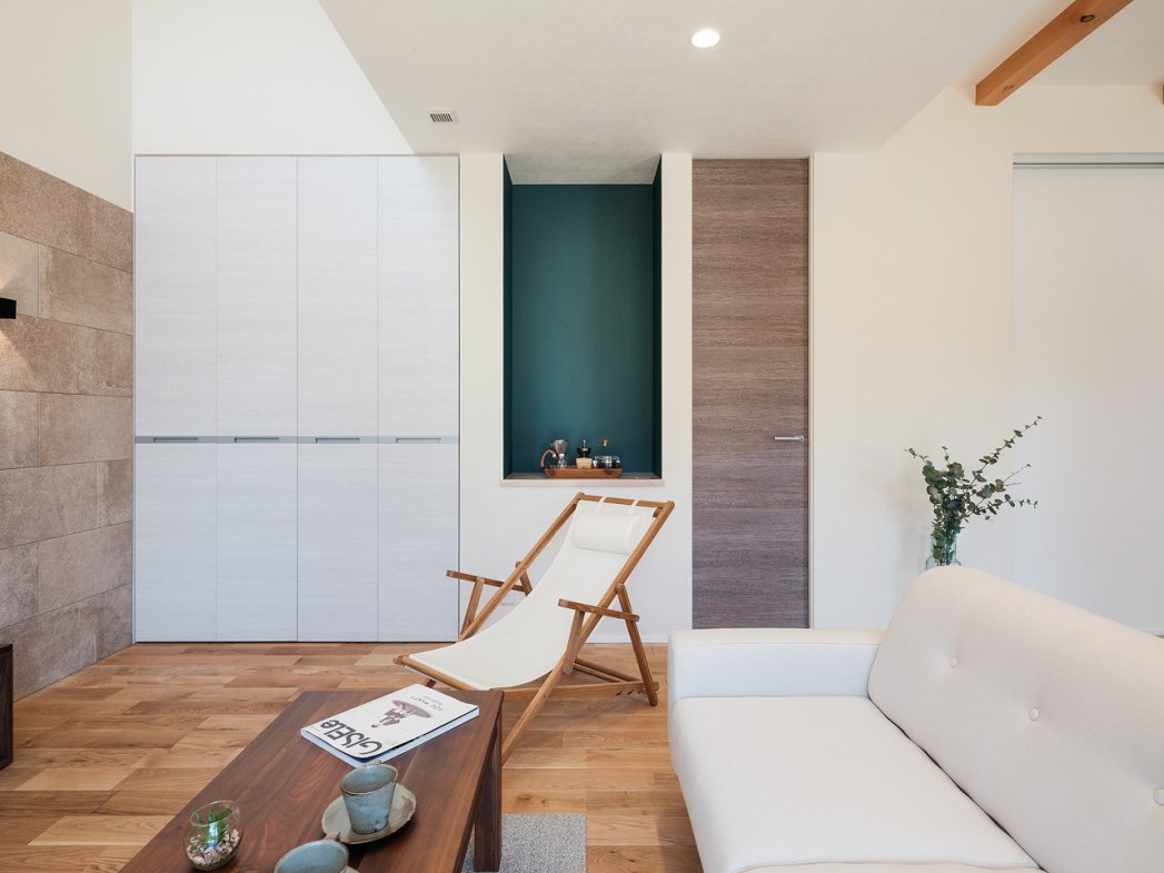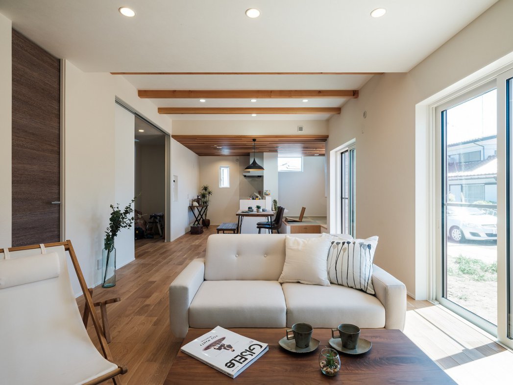 ご夫妻は住まいづくりにあたり、大きな吹き抜けや縦に広い空間での快適性を重視し、気密性や断熱性の高い住宅会社を1年かけて比較。その中で高砂建設を選んだ決め手は、性能の良さに加え、親しみやすく要望を伝えやすい営業担当と、イメージを的確に形にする設計担当の提案力でした。空の見える窓、どこにいても家族の笑顔を感じられる空間。ご夫妻の夢と想いがたっぷり詰まった住まいです。