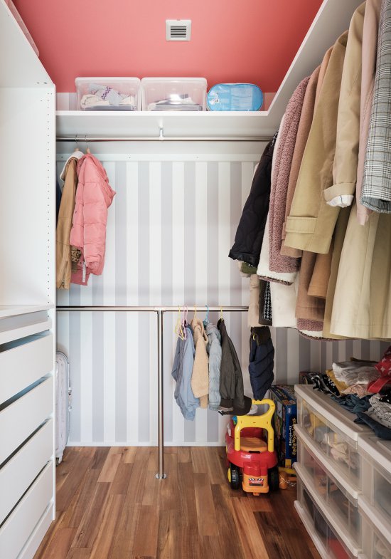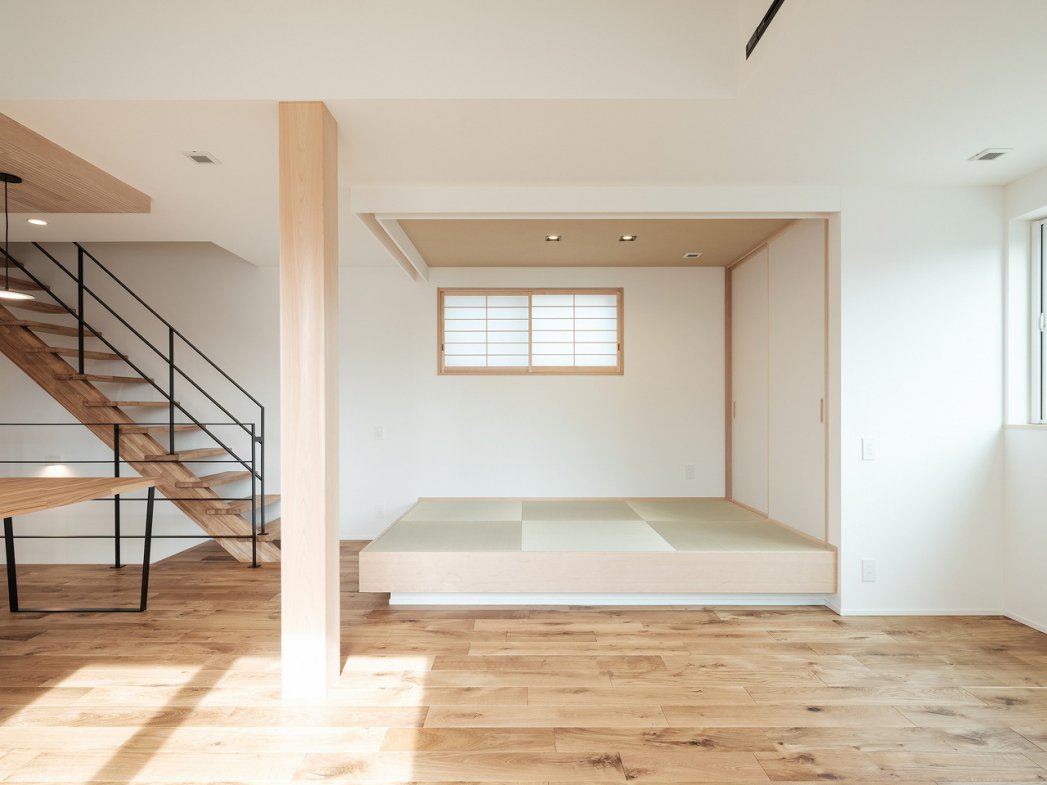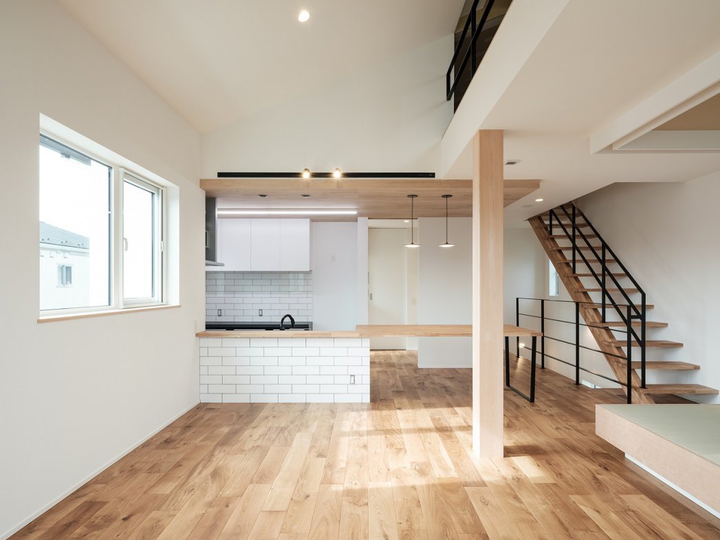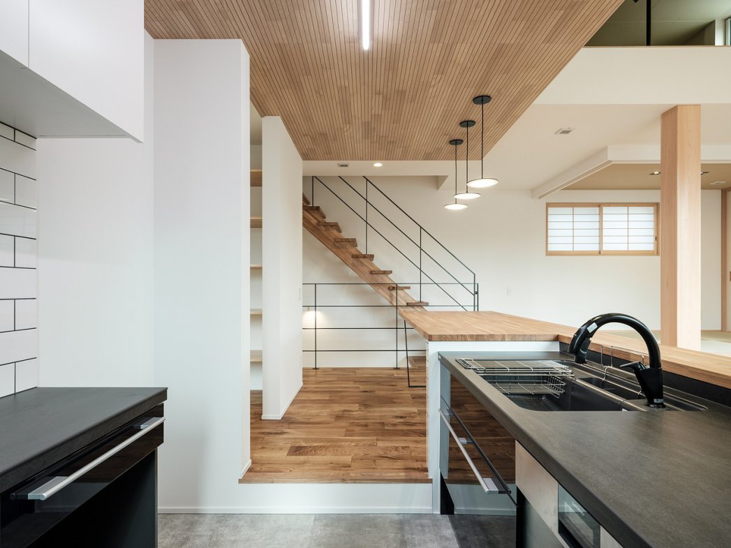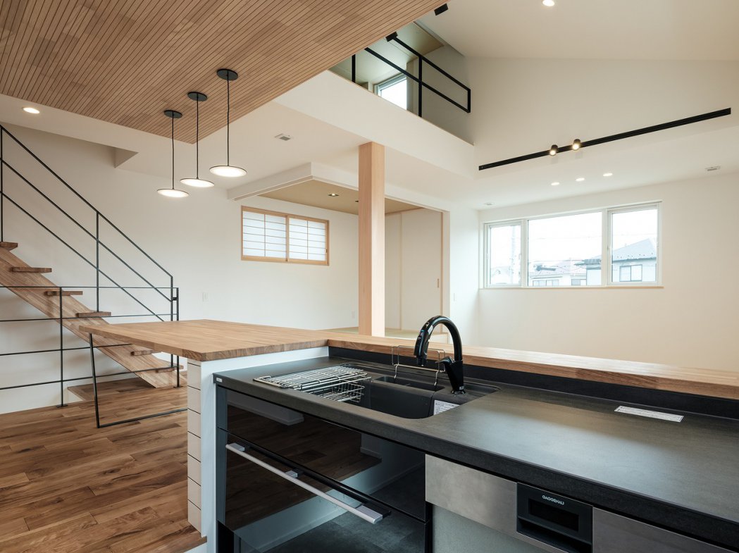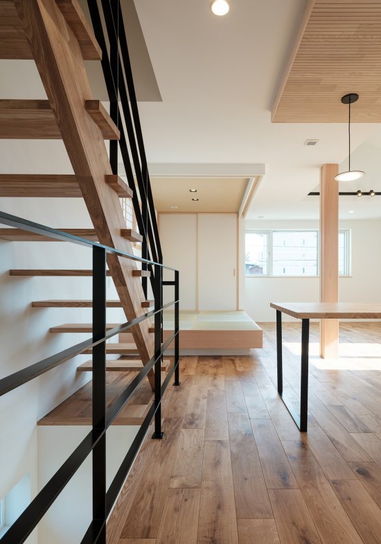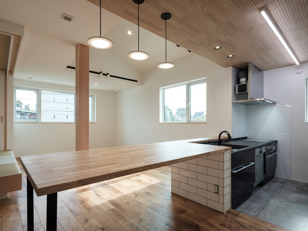 また、小上がりの畳スペースや、キッチンとつながる造作のダイニングテーブルなどを設け、自然素材をふんだんに採用。木の優しい色合いが、大人の落ち着きを感じさせる上質な空間に仕上がりました。