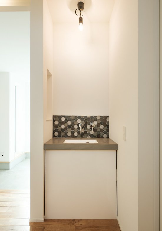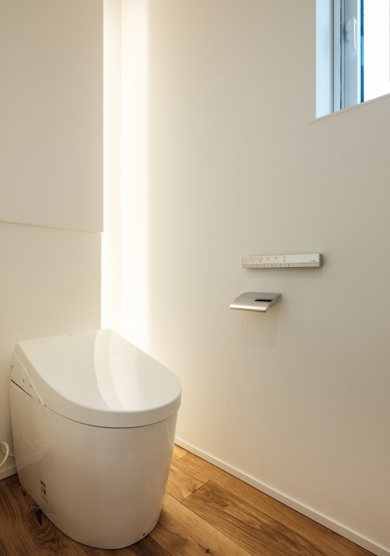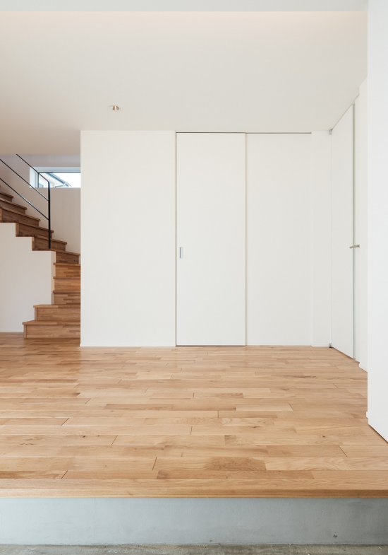 デザイン性の高さを重視されたご主人は、インテリアコーディネーターと打ち合わせを重ね、ホワイトオークの床を基調としたシンプルかつナチュラルなお住まいを実現しました。甘くなりすぎない洗練された「シンプルモダン」を大切に、1階の玄関ホールは広く設計し、訪れるゲストに強い印象を与える空間に。