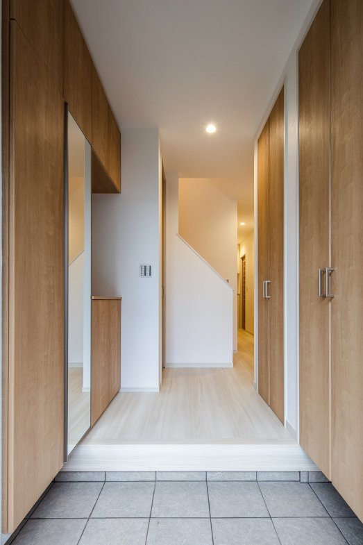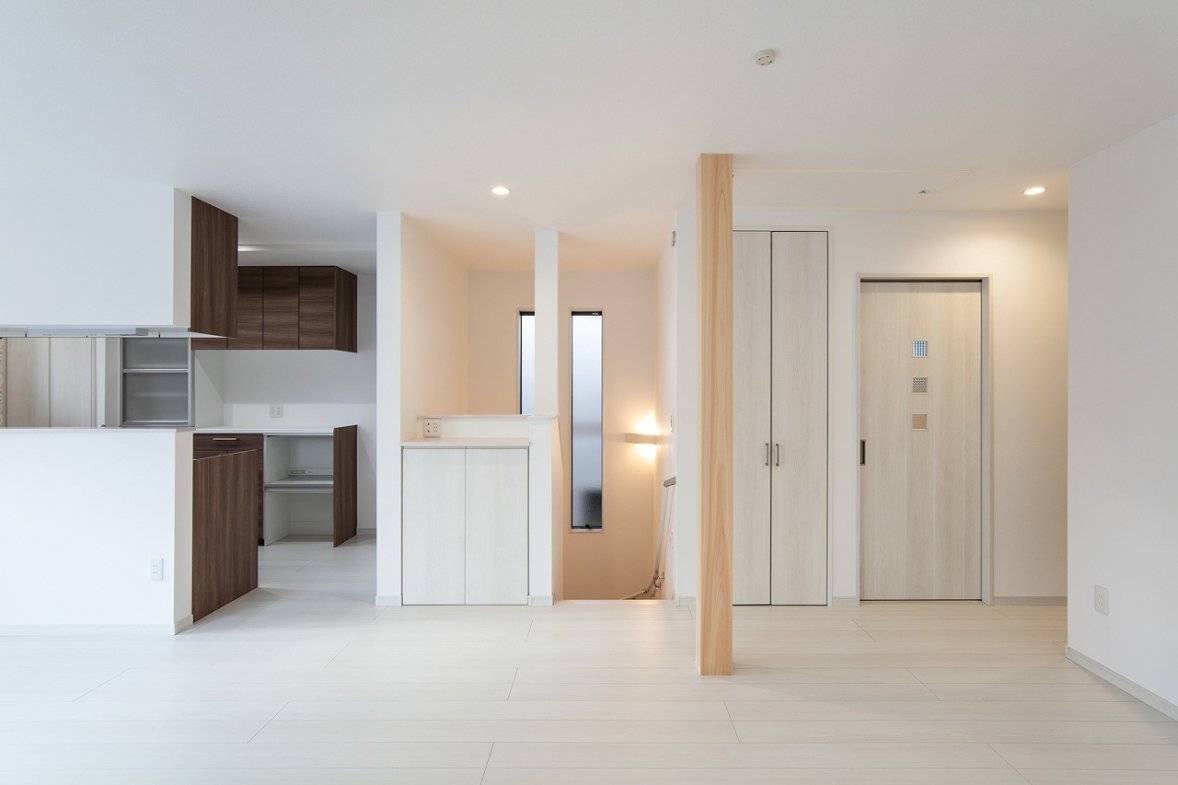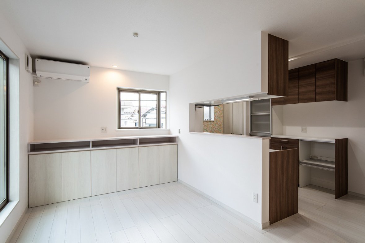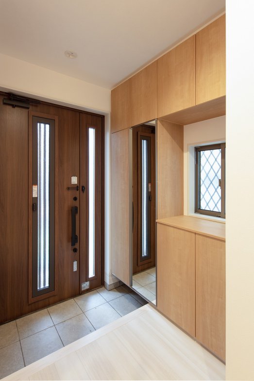 また、三世代が暮らすうえで生まれるジェネレーションギャップにも配慮し、窓の数や生活動線も丁寧に検討しました。お気に入りのクロスはご家族でショールームへ行って選ばれたもの。隣家が近いため大きな窓は避けつつも、採光を確保するために高窓を設け、防犯面と明るさの両立を実現しました。こうして、二世帯がそれぞれの生活スタイルを尊重しながらも一緒に心地よく暮らせる、理想の住まいが完成しました。