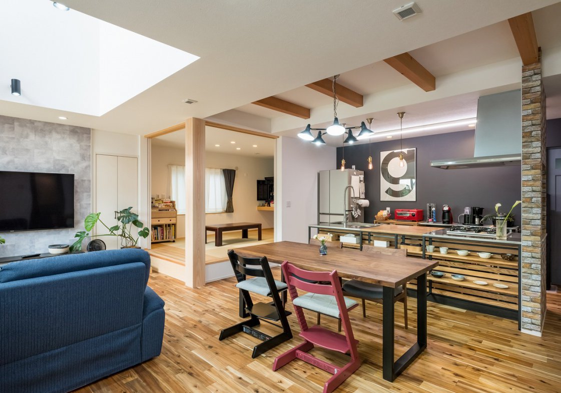 一体感・遊び心のあるゾーニングの北欧モダンの家