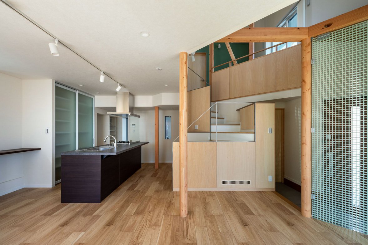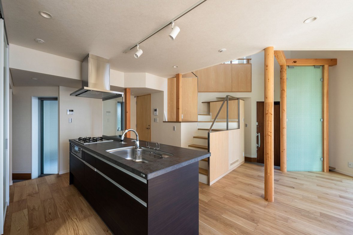 モルタルキッチンと照明で魅せる、30年後も快適な家